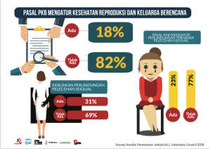 Masalah kekerasan pelecehan seksual di tempat kerja selalu berakhir di ruang hampa pemaafan dan atau pemecatan pelaku atau korban, ia seakan menjadi ruang gelap yang tidak perlu di bawa ke permukaan. Isu ini masih menjadi isu terbelakang dan bahkan terlihat tidak menarik dalam ruang-ruang perdebatan perundingan PKB di tempat kerja. Akhir tahun 2018 lalu misalnya, Komite Perempuan IndustriALL Indonesia council mengadakan survey terhadap 186 Perjanjian Kerja Bersama (PKB) dari 10 Federasi Afiliasi IndustriALL di Indonesia, sebanyak 77 persen PKB tidak pernah memuat pasal terkait pelecehan dan kekerasan seksual dan hanya ada 31% perusahaan yang mempunyai kebijakan perlindungan pelecehan seksual di tempat kerja, berupa pasal sanksi/hukuman (yang tidak berat) bagi pelaku kekerasan dan pelecehan seksual.